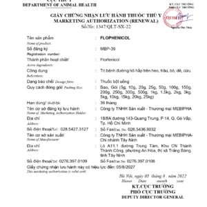 Trị bệnh: 1g/10kg thể trọng hoặc 1kg/250kg thức ăn, dùng liên tục 5-7 ngày.