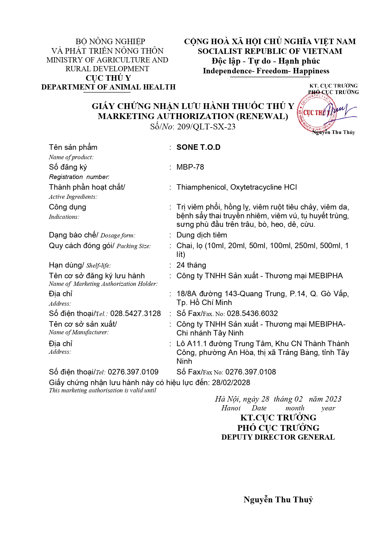 Trị viêm phổi, hồng lỵ, viêm ruột tiêu chảy, viêm da, bệnh sẩy thai truyền nhiễm, viêm vú, tụ huyết trùng, sưng phù đầu. Các trường hợp sốt, bỏ ăn không rõ nguyên nhân trên heo, trâu, bò, dê, cừu.